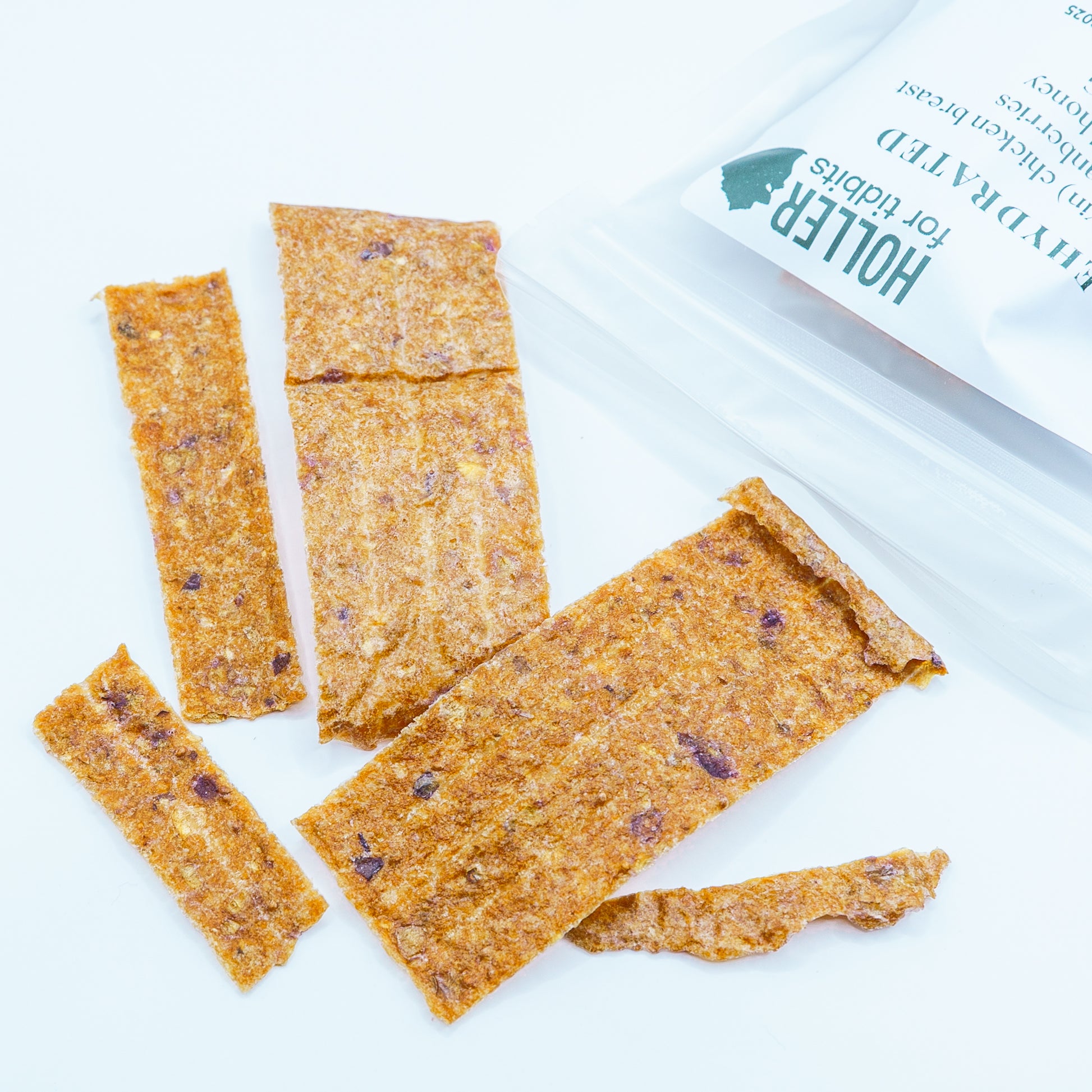 Dehydrated, chicken breast with cranberries and wild honey.